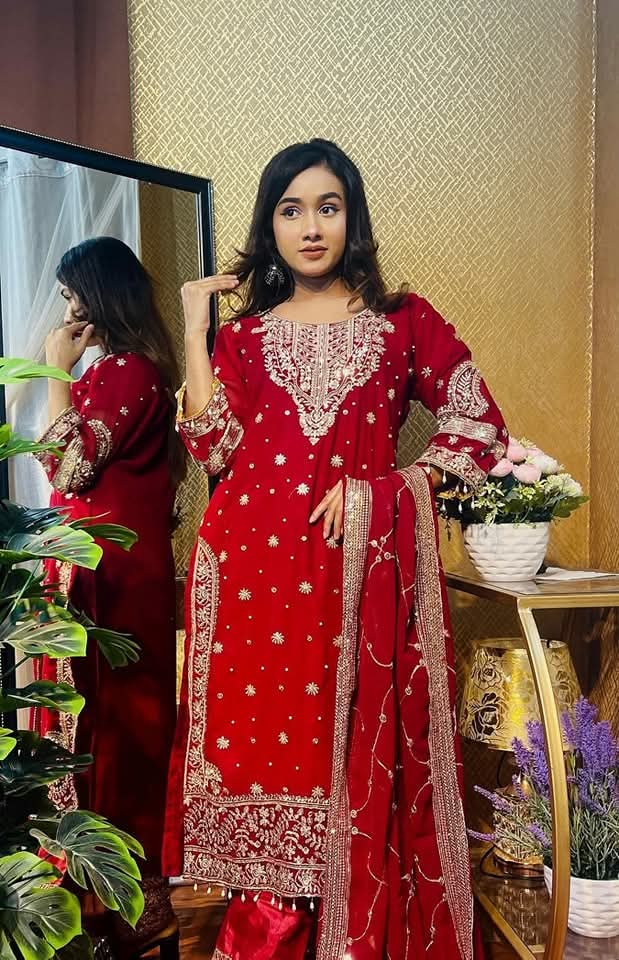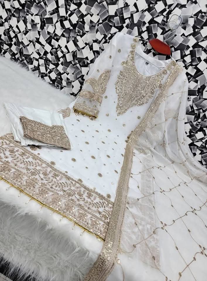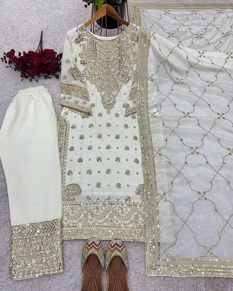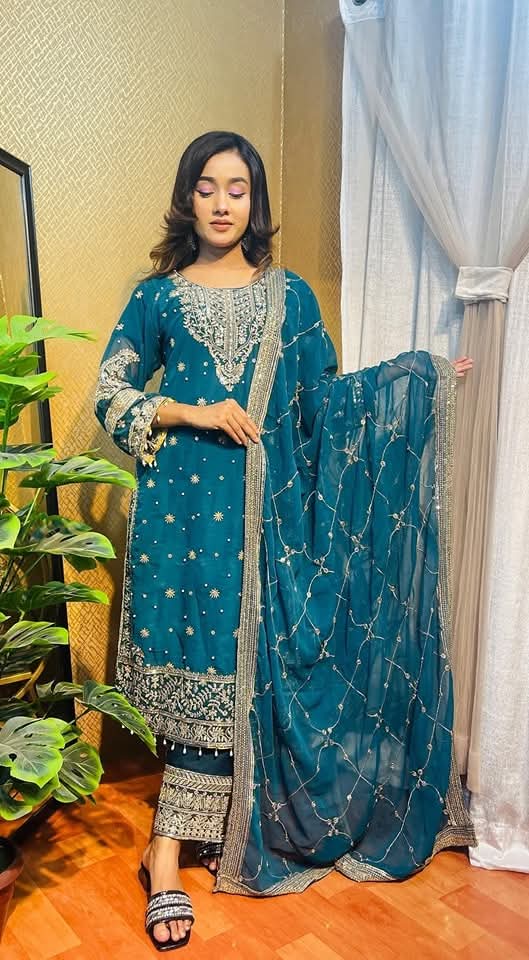 Let’s enjoy your occasion with an Indian Luxury 4 Ps Dress. This not only looks beautiful but also we provied a quality guarantee. Original Luxury siphon Georgette fabric and have embroidery and sequence combination work on the whole Dress. All sizes are available.