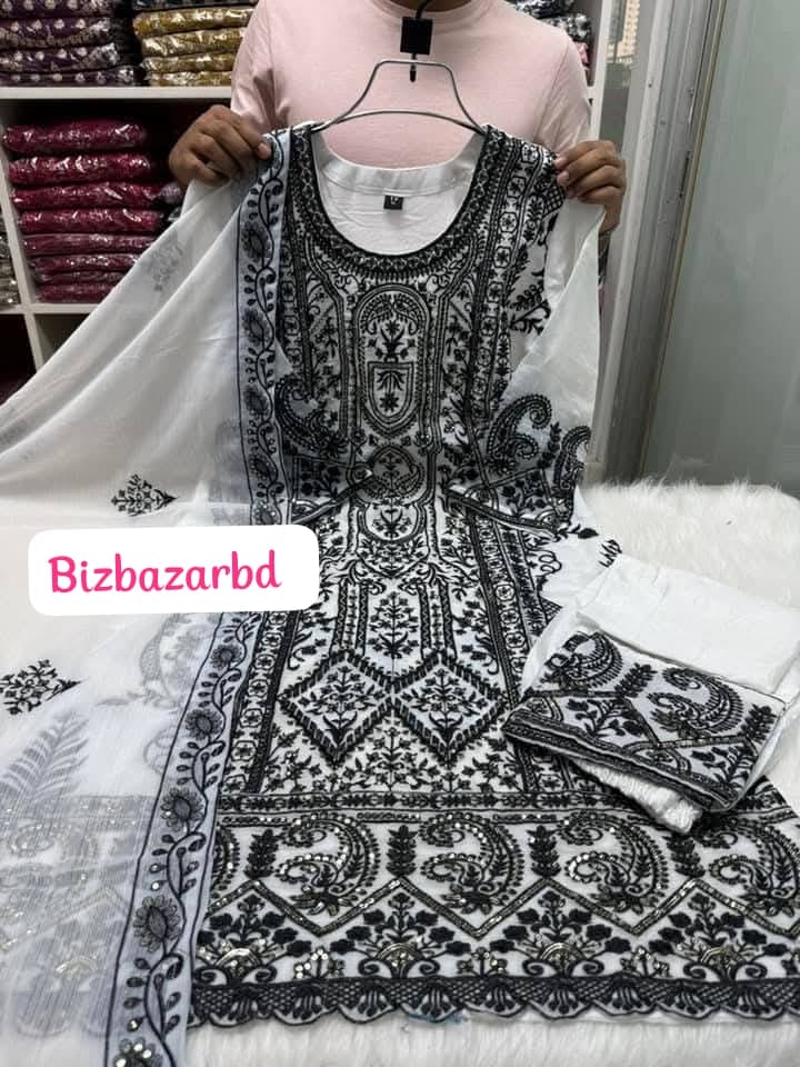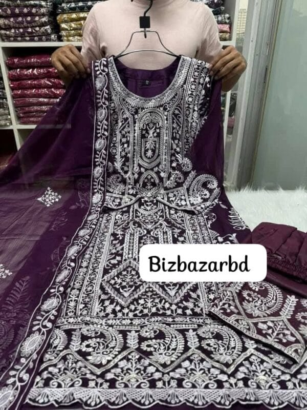 This Popular Indian Three Piece gives you an elegant look. Full Ready-made, quality full stitches and Super embroidery work finishing make the dress so pretty. We provide 100% Quality Guarantee. This dress can be a perfect selection for you.