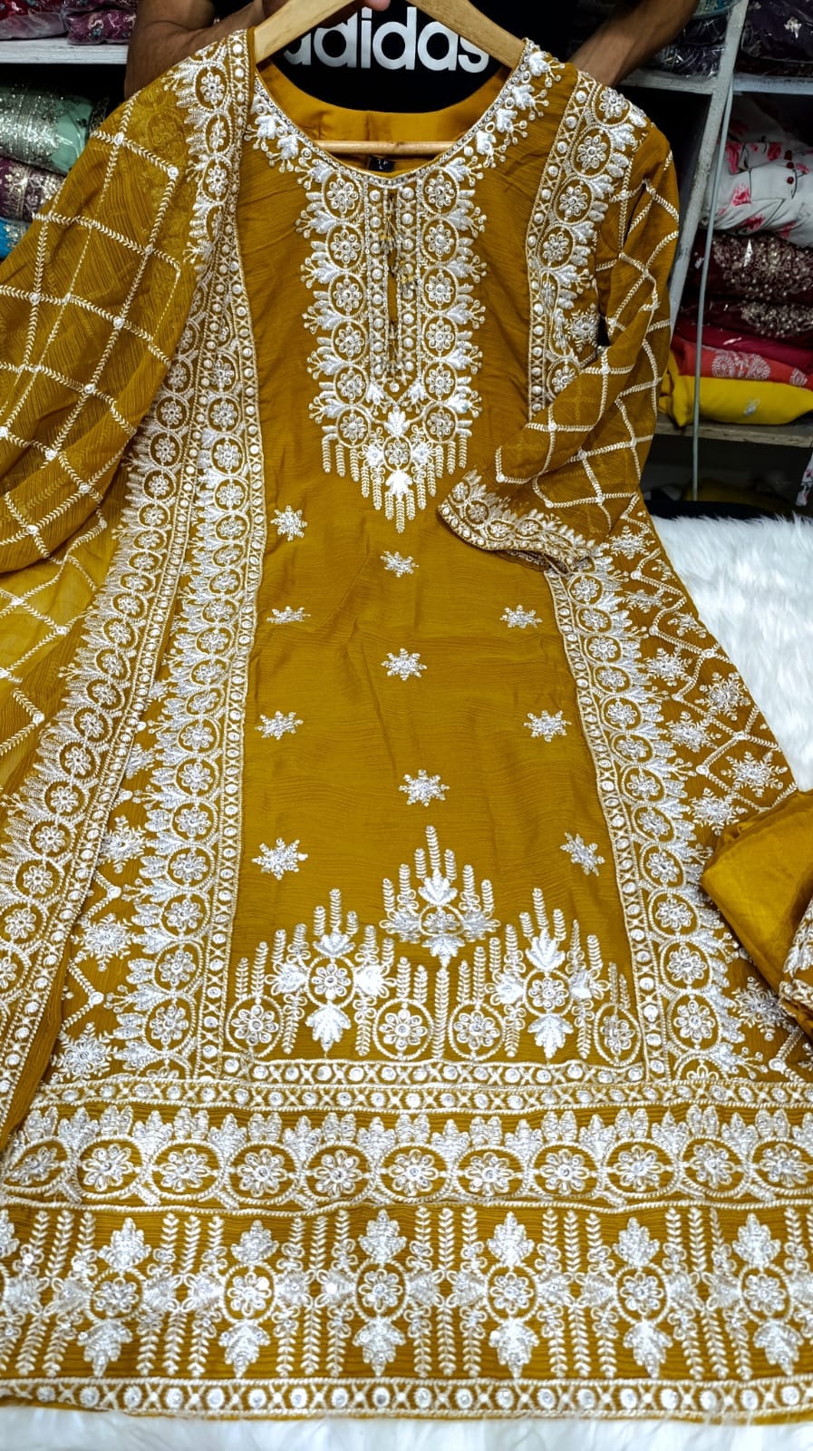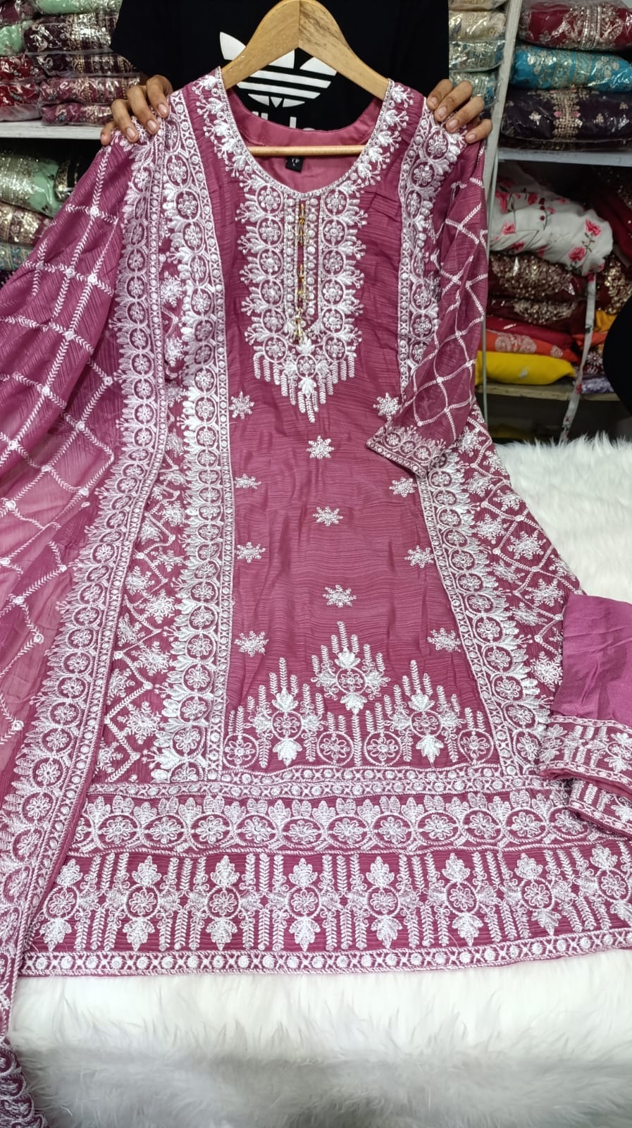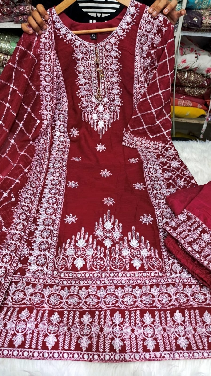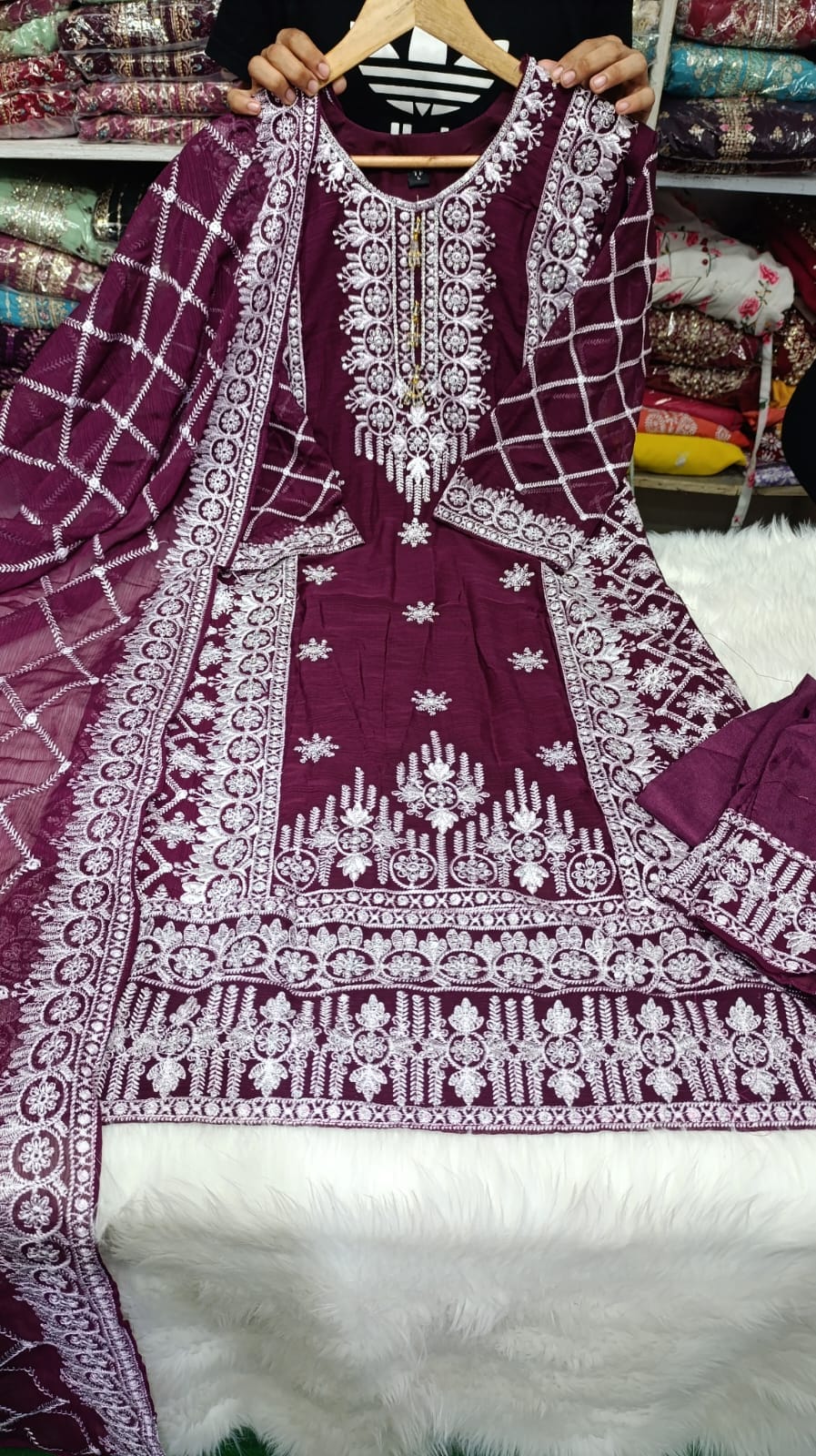 Feel the touch of our Premium Chiffon Georgette Three Piece with elegance and comfort. This dress is crafted from high-quality chiffon georgette fabric. Up to the bottom, the dress has gorgeous sequences and heavy embroidery boring work. The dupatta has also sequence and borking work with super finishing of design. This dress is perfect for any occasion, party, program, or event. Have multiple color collections, you can choose your best one from here.